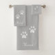 Pet paws and editable name text on light grey Bath Towel Set. Elegant simple design for pet lovers!