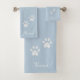 Pet paws and editable name text on light wondrous blue Bath Towel Set. Elegant simple design for pet lovers!