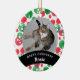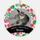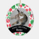 Remember your beloved pet always with this personalized ornament. This personalized keepsake features festive red and green watercolor polka dots. You can add your cat or dog's photo in the centre and their name at the bottom, below text that reads “Merry Christmas” (which is also changeable).