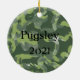 Unique Christmas holiday ornament with Camouflage background and an orange bow. Add a name and date or year on the back. Great gift for hunters, dog lovers, or anyone that loves the great outdoors. Customize with your pet's photo so they have their very own decoration for the tree. Can also used as a pet memorial to commemorate your precious pet. Dog or cat lovers, Camo lover, hunting lovers will appreciate this fun ornament.