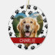 Create your own custom photo personalized pet photo ornament this holiday season. Features paw print pattern background.