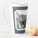 Tall latte tasse avec modèle photo animal (chat, chien, ou tout animal de compagnie) et paragraphe pour parler des caractéristiques particulières de l'animal. Couleur gris-bleu foncé avec cadre d'album photo à l'ancienne autour d'un modèle photo carré. Le texte à côté de la photo a une place en haut pour le nom de l'animal, avec un paragraphe en dessous pour inclure beaucoup d'informations amusantes sur le membre spécial de la famille. Le texte est un style de police imprimé à la main en blanc et peut contenir des informations sur la façon dont l'animal a été trouvé ou adopté, ses capacités et ses traits uniques, ses goûts et ses avertissements, son comportement décalé, etc. Cette grande tasse fait un cadeau sucré à n'importe quel amoureux des animaux, et pourrait être créé en mémoire d'un animal de compagnie qui est passé.