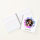 Create a one-of-a-kind notebook featuring a favourite photo of you and your pet. Your chosen picture will be framed by an elegant pink and blue floral design. Below the photo, you can customize the text with your own message, such as your name and your pet's name. This charming spiral-bound notebook makes a thoughtful and stylish gift for animal lovers.