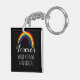 Personalized pet photo keychain with your beloved pets name and dates on one side and the other is an image of a rainbow bridge with the sweet saying "Forever would not have been long enough".