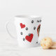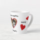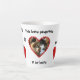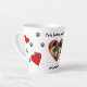 Pets leave pawprints on our hearts. Edit this text, upload your favorite pet photo, add your pet's name to make a unique personalized mug. The photo is framed by red pawprints in a heart shape.