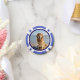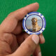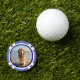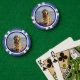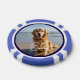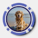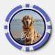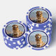 Pet photo personalized poker chips. Replace the photo with your own and change the text. Easy to do from the product page. White script with photo and blue background.