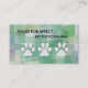 A unique pet photographer business card template with dog paws on the front along with your company name, and all your photography and contact information on the back. Designed for a pet, pet portrait, or dog photographer service with pretty abstract background.