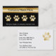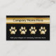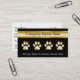 Pet service business cards with modern design that includes four gold coloured pet paw prints, a gold accent element and smart two side design with text space to personalize and customize for your pet theme business.