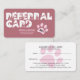 Modern Referral card designed for veterinary clinic, pet groomers, dog walkers, pet care services etc. Design features typography script ''referral card'' with animal icons on rose gold background, referral discount and paw print on the front. Personalize with more details on the back.