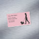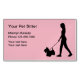 Simple pet sitter magnetic business cards you can hand out to customers in hopes they keep your number handy whenever they need a pet sitting service. Decorated with image of a pet sitter walking a dog.