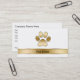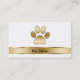 Simple pet sitter business cards with gold metallic like paw print, modern two side design and great text layout you can customize online. Distinctive look makes a classy business card template for a pet sitter, pet groomer, veterinarian, or pet service.
