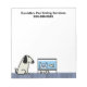 Cute notepad for your pet care business. Dog is wagging his tail, watching the aquariulm with the cat.