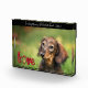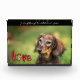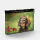 A thoughtful pet sympathy gift to honour and remember a dear pet. Creative and personal pet memorial. Add a photo of your pet or friends pet and a message of remembrance. Simple and modern with the word love and dog paw print. Can be displayed on desk, furniture, shelf and other flat surfaces.