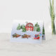 Pet Tervuren Dogs are pulling the red Christmas Sleigh! The 4 Terv dogs are pulling a sleigh with gifts. A red barn and snowman are in the background. You can personalize with your last name on the barn and change the greeting on the inside. Illustrated by artist ©Jacqueline Schneider