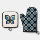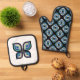 Cook with creative flair using this Petal Prism (Fusion edition) oven mitt and pot holder set featuring a complementary pairing of butterfly and patterned elements, full of motion and contrast.