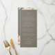 Apportez une élégance intemporelle à votre réception de mariage avec cette carte de menu magnifiquement conçue dans une teinte molle marron taupe. Les délicats détails floraux et les tons neutres créent une atmosphère chaleureuse et accueillante, ce qui en fait l'ajout parfait à un cadre raffiné et romantique.