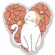 This captivating sticker features a sweetly smiling cat standing in front of a heart made entirely of vibrant flowers. Perfect for cat lovers, this design is a delightful celebration of love and nature.