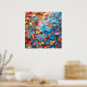 The composition balances chaos and elegance. Each petal-like form appears spontaneous, yet together they form a harmonious rhythm that guides the eye across the artwork. The contrast between cool blues and warm floral tones creates energy and visual depth, evoking feelings of movement, freedom, and natural beauty interpreted through a modern abstract lens.