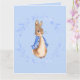 Pierre le lapin avec une couronne bleue et un arrière - plan bleu.