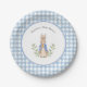 Peter Rabbit Blue White Gingham Baby Shower Paper Plate