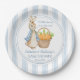 Peter rabbit dusty blue stripes baby shower custom paper plate