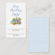 Peter rabbit with a blue jacket blue flowers baby shower guess how many carrots game card. A cute bunny in a blue jacket standing in a blue bell garden for a baby boy baby shower game cards