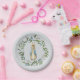 Watercolor Peter Rabbit bunny in a blue jacket surrounded by hand-painted watercolor flowers, berries and foliage. These plates would be adorable for a baby shower or child birthday party.