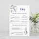 Watercolor Peter Rabbit Purple Baby Predictions and Advice Game.