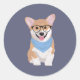 Peter The Cute Hipster Blue Bandana Corgi Puppy Classic Round Sticker