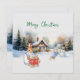 Peter the Rabbit with Josephine bunny on a snow filled landscape and snowman wearing a top hat and scarf.
