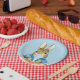 Peter the Rabbit Blowing a Blue Bubble Gum Paper Plate