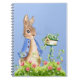 Peter the Rabbit in his little flower garden checking the cute bird house.