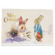 This delightful artwork brings together Peter the Rabbit and a whimsical snow bunny for a festive, heart warming scene.