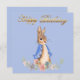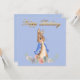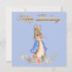 Peter the Rabbit on a Blue Background with gold "Happy birthday" text.