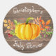 Petit Autocollant Baby shower Citrouille avec arrière - plan en bois rustique. Pour plus de personnalisation, cliquez sur le bouton "Customiser" et utilisez notre outil de conception pour modifier ce modèle.