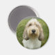 A PBGV looking straight at you, through his scruffy hair and beard, just begging to make friends. Adorable and cute image for any dog lover.