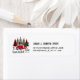 Une étiquette d'adresse de retour de Noël amusante et mignonne avec la vieille mode petit camion rouge avec arbres motifs. pour quelqu'un pour les vacances.