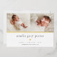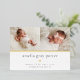Faire-part de naissance douce et élégante présente deux photos de nouveau-nés alignées côte à côte, avec une bande de feuille d'or en dessous. Personnalisez avec le nom du bébé, les statistiques de naissance et un message de famille, orné d'un petit coeur doré.