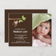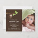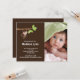 Notre petit singe a le bébé arrivé que le faire-part de naissance de photo est une manière douce d'annoncer à votre famille et amis que votre petit bonbon est arrivé. La carte de faire-part de photo comporte le petit singe le plus mignon pendant d'un ensemble de branche d'arbre sur un arrière - plan brun avec un accent pointillé par polka. Ajoutez votre photo et l'information et vous sont tous placent pour aller ! studio de ©cocoa