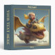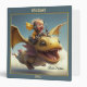 Un classeur mignon avec un garçon volant à travers le ciel sur un dragon heureux.