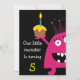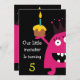 Petit début mignon d'invitation de partie d'anniversaire de enfant de monstre votre partie outre de droite avec notre petite invitation adorable de partie d'anniversaire de enfant de monstre comportant le petit monstre rose de partie le plus mignon utilisant un casquette de partie et tenant un petit gâteau. Perfectionnez pour un ęr anniversaire ou n'importe quel changement d'anniversaire… juste l'anniversaire. Entièrement personnalisable par vous avec votre information. conception ©Babystar