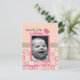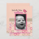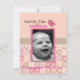mignonne petite fille faire-part de naissance. Pêche douce avec un petit oiseau rose foncé accentué avec un motif carré. Ce produit peut être complètement customisé pour devenir une faire-part ou une invitation pour un baby shower, fête d'anniversaire, douche, remise de diplômes, note de remerciement ou toute autre occasion!