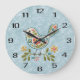 Magnifique Petit Oiseau Floral Vert Feuille Broderie Mur Horloge