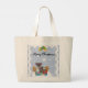 Un précieux Sac fourre-tout Jumbo de Noël avec un mignon petit ours marron en pyjamas assis sur une courtepointe colorée avec des cadeaux. Un petit garçon et une petite fille en pain d'épice s'assoient sur sa couverture tandis qu'ils flottent tous sur un nuage à travers le ciel enneigé. Un petit arc et un "Joyeux Noël" en font un sac fourre-tout adorable pour tout le monde.
