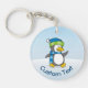 Un petit dessin de pingouin avec casquette et écharpe marchant sur la neige. Texte personnalisé des deux côtés.
