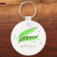 A whimsical and cheerful watercolor and ink illustration of pea pods and peas with French text. A delightful image to hold your keys!