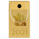 Design élégant avec papier doré coupé d'un Ox. Conception sur petit sac cadeau avec Large 2021, Année du x et monogramme sur noir rond + même image arrière - plan dans le dos. Vous pouvez facilement modifier le texte (police, couleur, taille et position) en cliquant sur le bouton personnaliser.