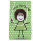 Anniversaire fille en bâton avec un verre de vin, cheveux, collier de perle, baskets, et lunettes sur un pois vert et blanc arrière - plan pois pour l'anniversaire. Le texte peut être modifié ou supprimé.