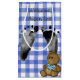 En vichy bleu avec empreintes de bébé garçon et ours en peluche pour nouveau-né garçon.