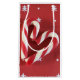 Sac cadeau Festive montrant deux sucres de canne rouges et blancs formant un coeur, sur un arrière - plan rouge avec des étoiles blanches et des arbres de Noël.